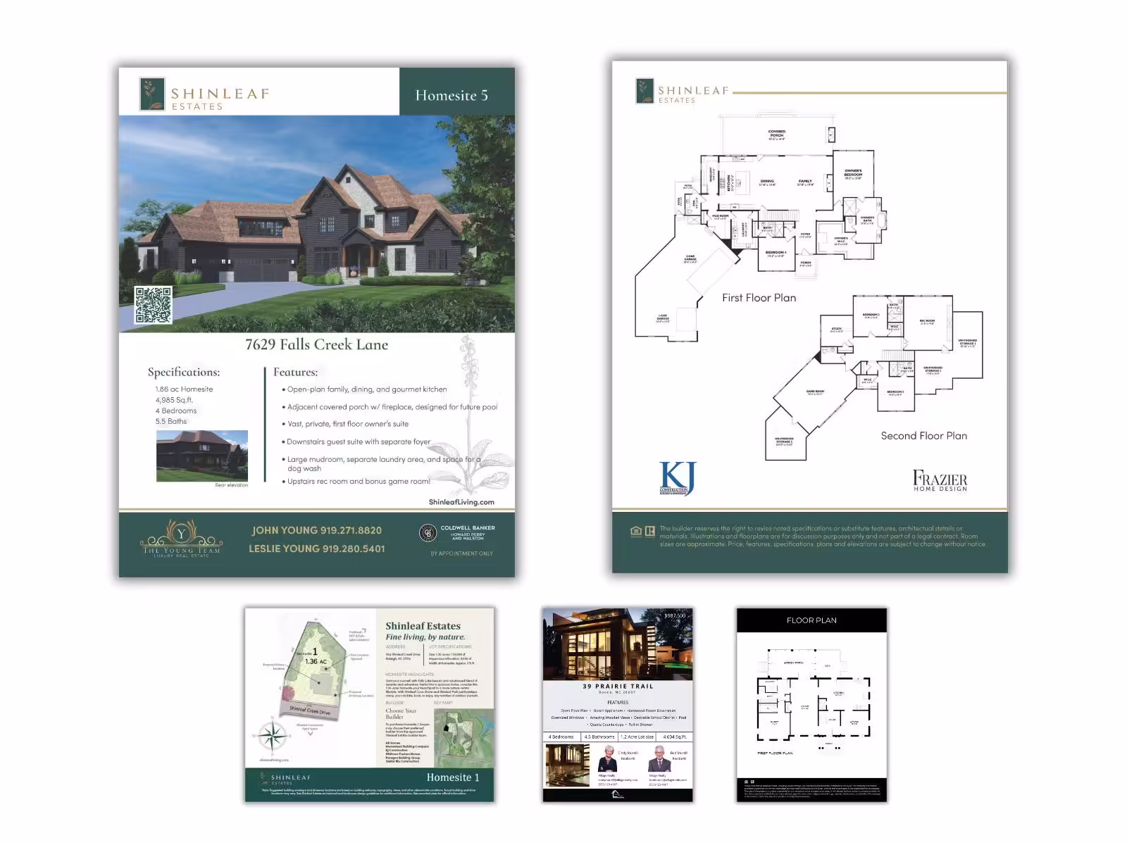 From homesite signs to office displays, we design high-quality, custom signage to grab attention and guide potential buyers to your listings. Our designs are tailored to reflect your brand and highlight the properties you represent.