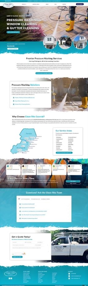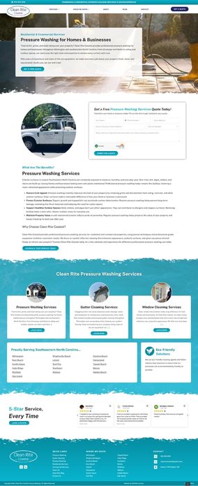 Clean Rite Coastal Pressure Washing provides exterior cleaning services for residential and commercial properties throughout Wilmington and surrounding areas in Brunswick and Pender Counties. Their existing website required a refreshed design and improved structure to better present core services and support ongoing marketing initiatives.